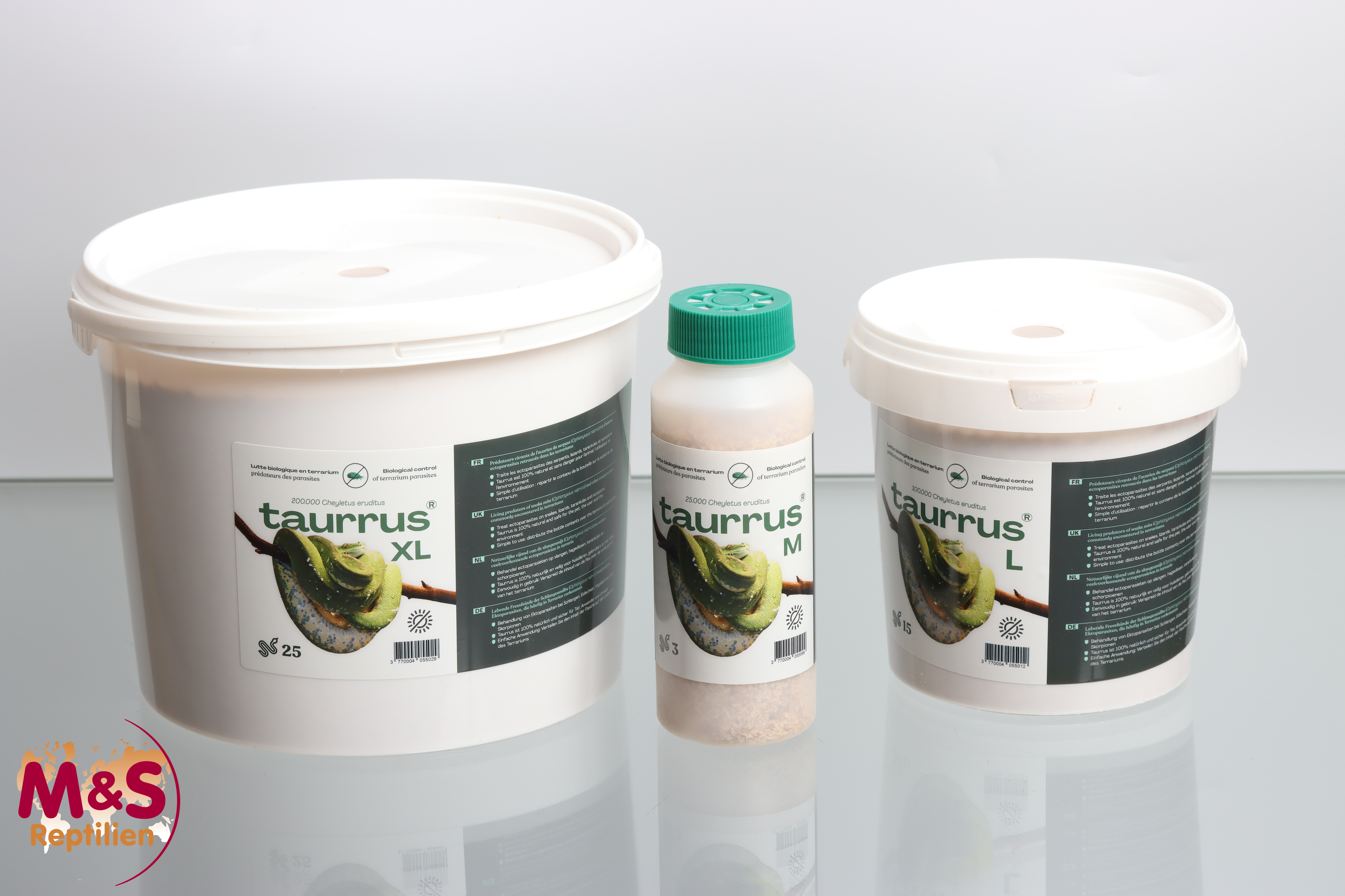 Die TAURRUS Raubmilben verzehren die Parasiten der Reptilien und einige Arten von Milben und kleinen Insekten. In einer natürlichen Umgebung kolonisieren die TAURRUS Raubmilben den Bau einiger Säugetiere und reinigen ihr Biotop.