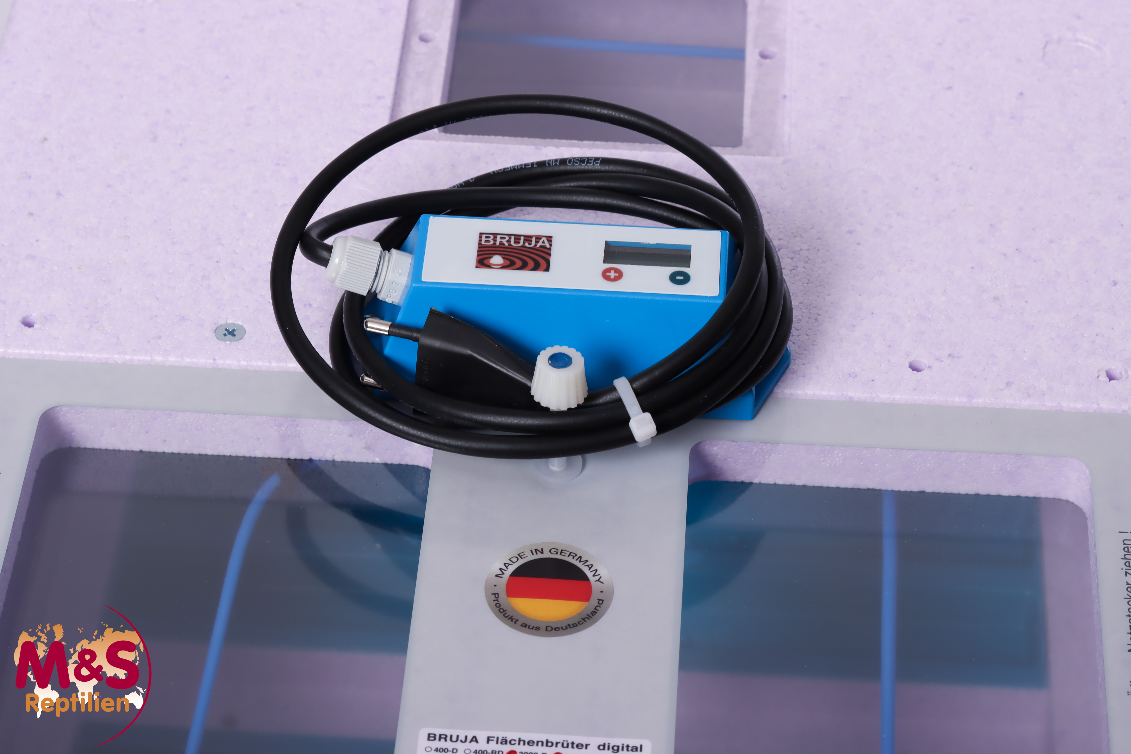 Digitaler mikroprozessorgesteuerter Präzisions-Temperaturregler mit einer Auflösung von 0,1° Celsius. Verschleiß freies Schalten der Heizung durch Vollwellenimpulsregelung mit Halbleiterausgang. Istwert-Anzeige der Temperatur am Sensorfühler in Zehntelgrad im LCD-Display. Genaue Temperaturerfassung und Temperatureinstellung auf Eioberkante durch höhenverstellbaren Sensorfühler. Einstell- und Regelbereich von 20,0 bis 40,0° Celsius. 230 Volt, 50 Hz, CE, LGA/GS-geprüft. Ständige Anzeige der IST-Temperatur in 1/10-Grad