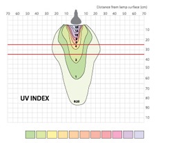 Abstand Temperatur UVB (UW/CM²) UVA+B (UW/CM²)