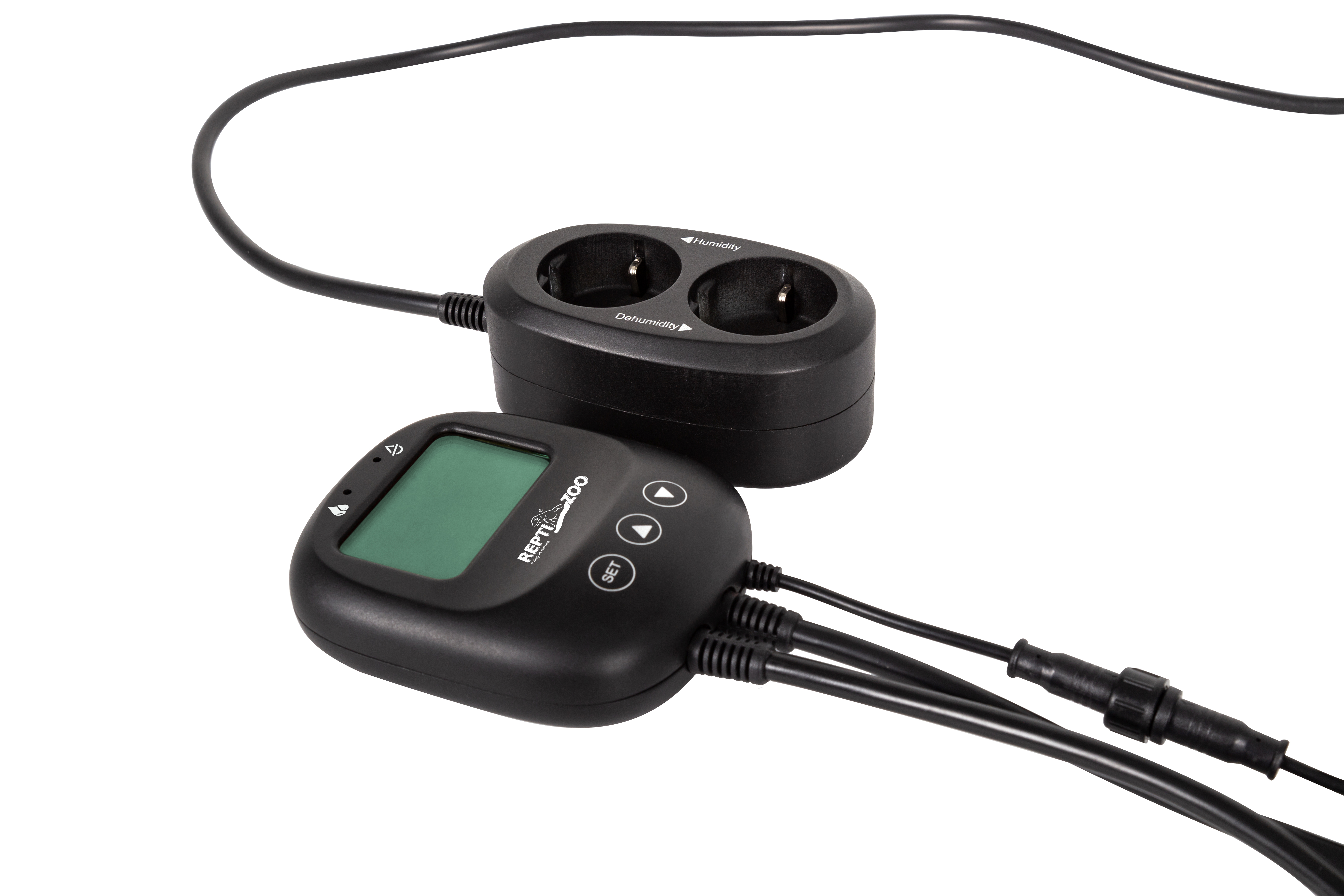 Dieses Thermostat hat 3 Anschlüsse. Eine für eine Heiz- oder Kühlquelle, ein Anschluss mit Timer und einen Anschluss für eine Befeuchtungsquelle. Alle drei Anschlüsse haben eigenen KreisEs ist ideal, wenn zwei verschiedene Heizquellen, z.B. eine UV Lampe für den Tag und ein Keramiklampe für die Nacht genutzt werden sollen oder eine Wärmequelle für die Nacht und eine Kühlung für heiße Sommertage.