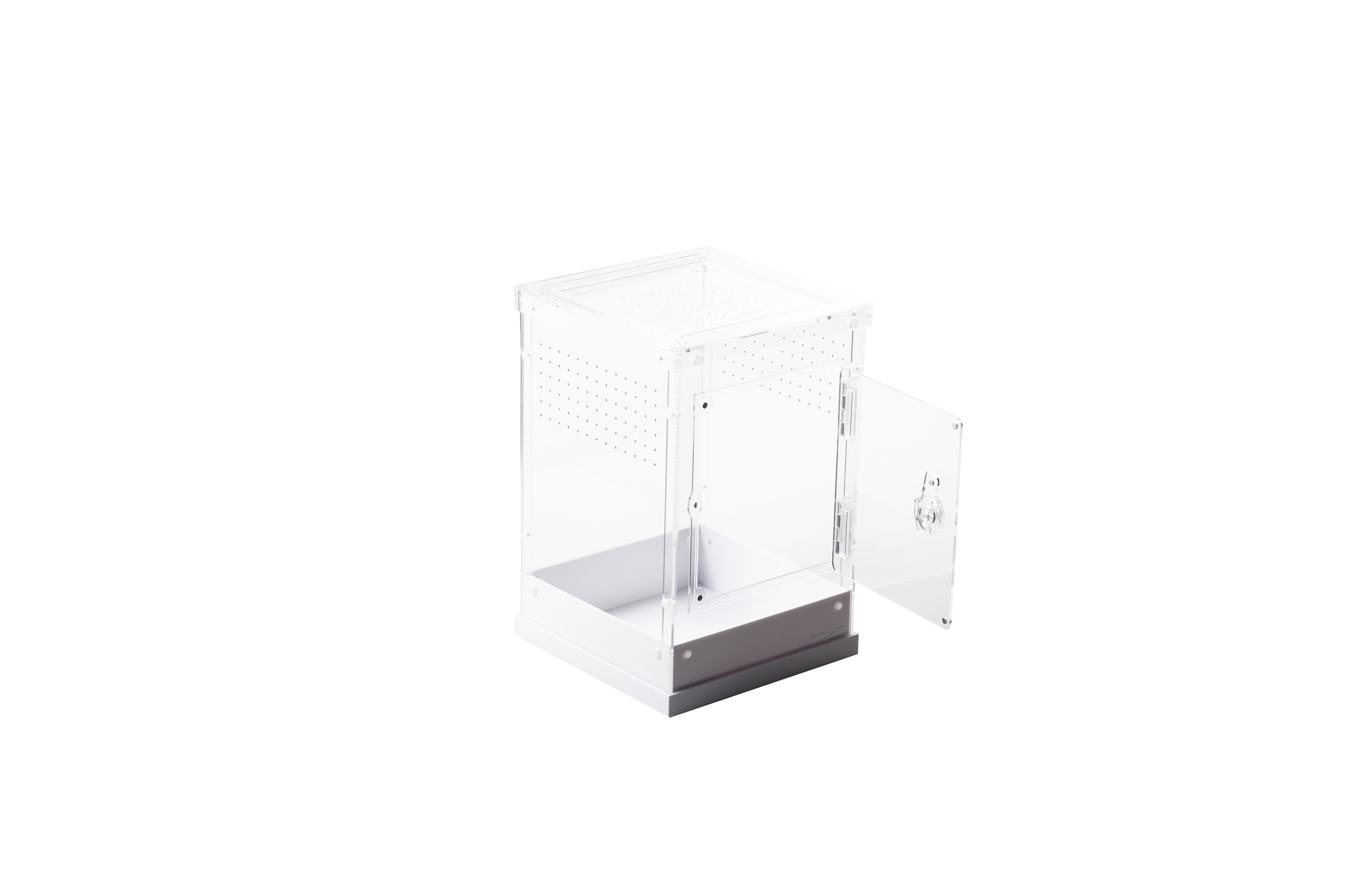 Schönes ReptiZoo Hochterrarium aus Acryl zum Brüten und zur Aufzucht von Jungtieren. Dieses Acrylterrarium ist nicht aus einem Stück, sondern komplett zerlegbar und hat eine Schwenktür zum Öffnen.