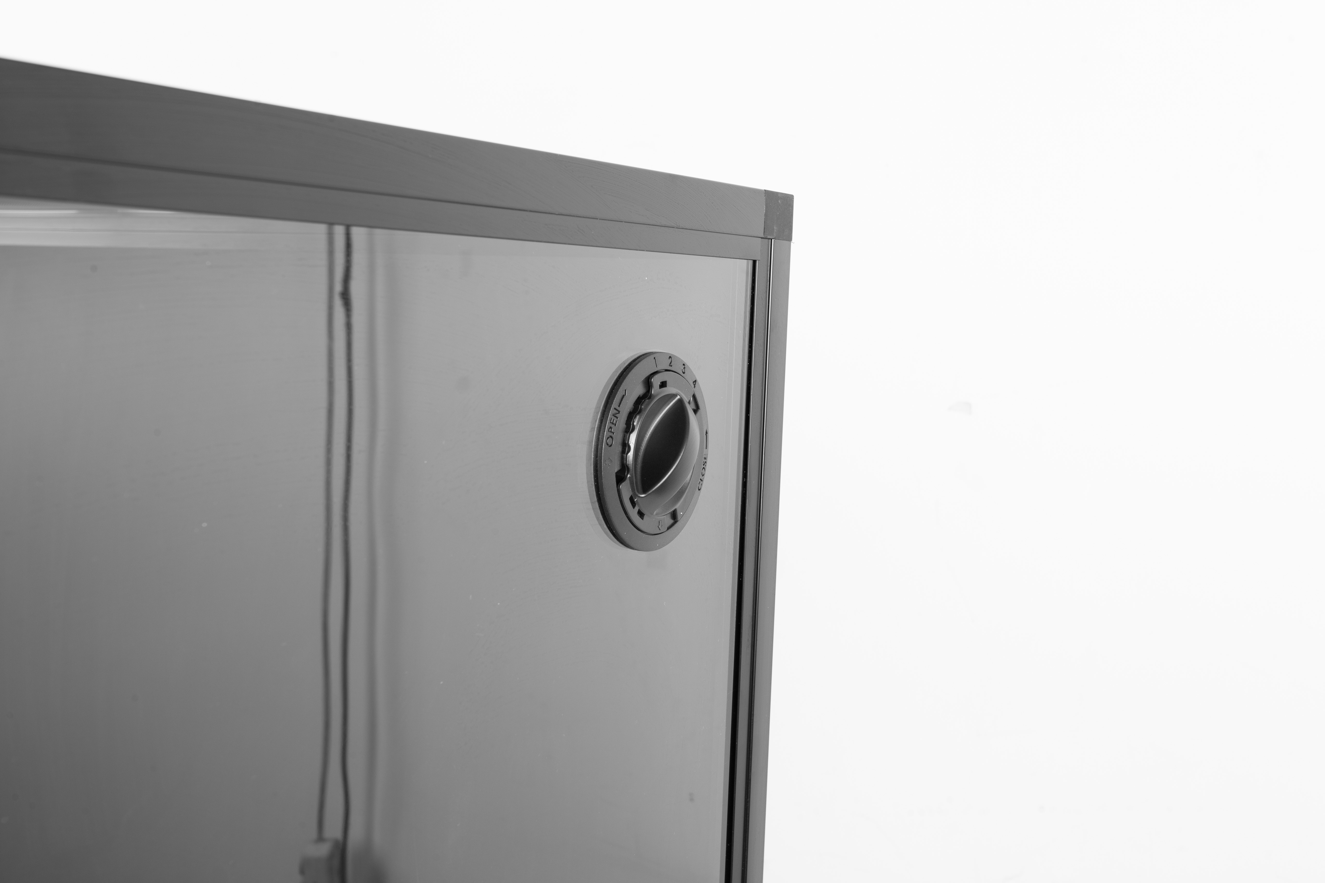 Inklusive Kabeldurchführung, Glasschiebetüren mit Schloss.