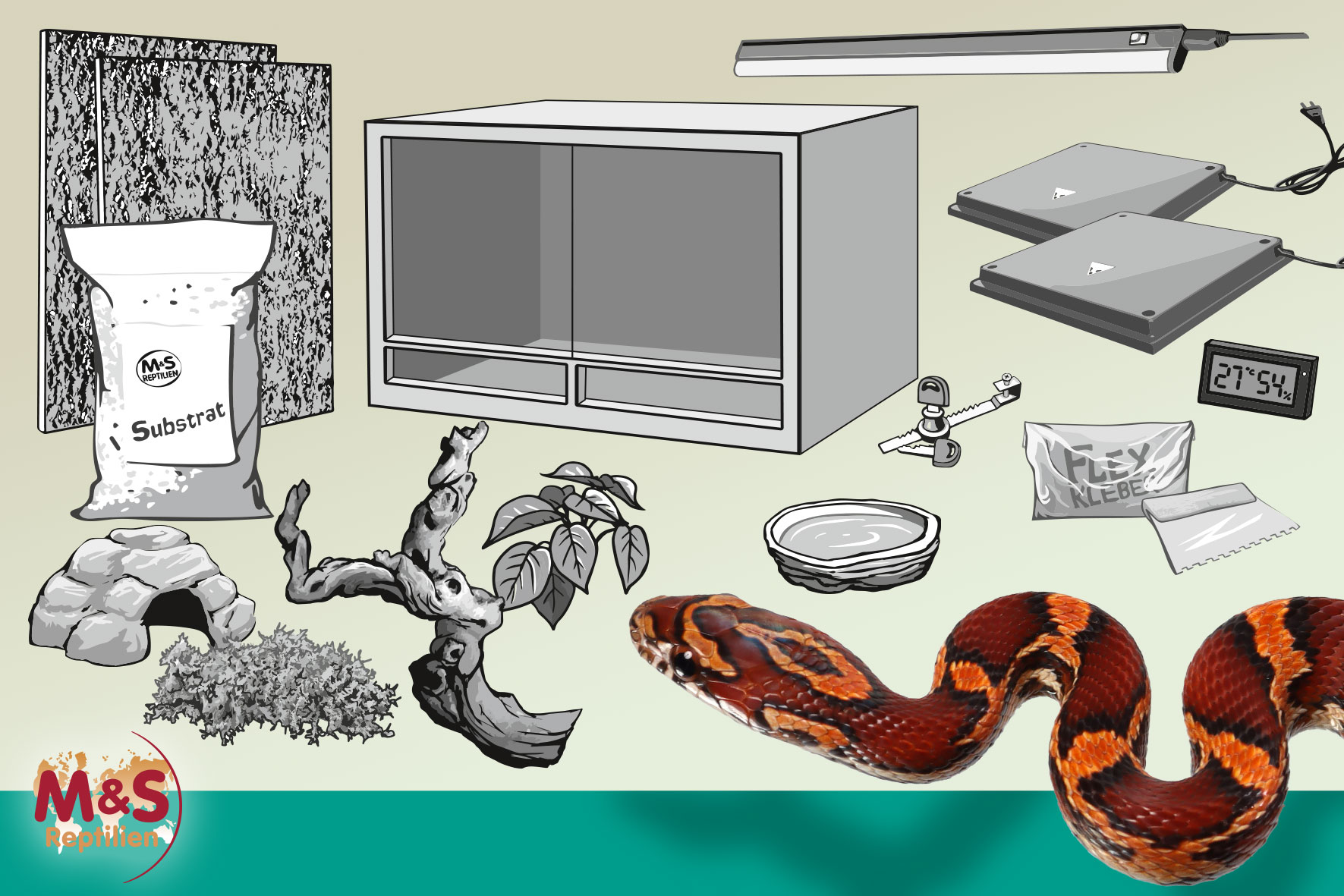 Komplettset: Für (Korn-) Nattern (120 cm Länge)